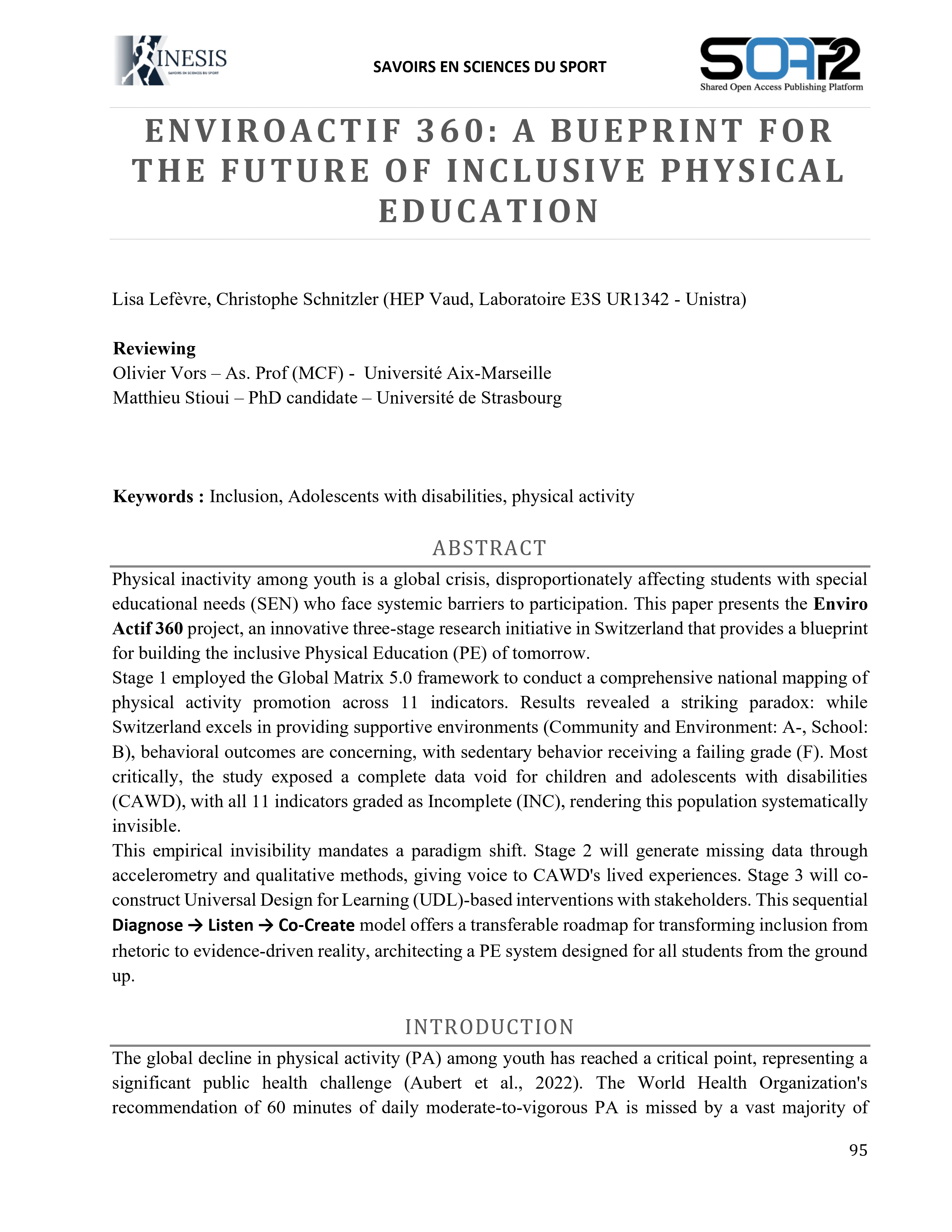 Physical inactivity among youth is a global crisis, disproportionately affecting students with special educational needs (SEN) who face systemic barriers to participation. This paper presents the Enviro Actif 360 project, an innovative three-stage research initiative in Switzerland that provides a blueprint for building the inclusive Physical Education (PE) of tomorrow.