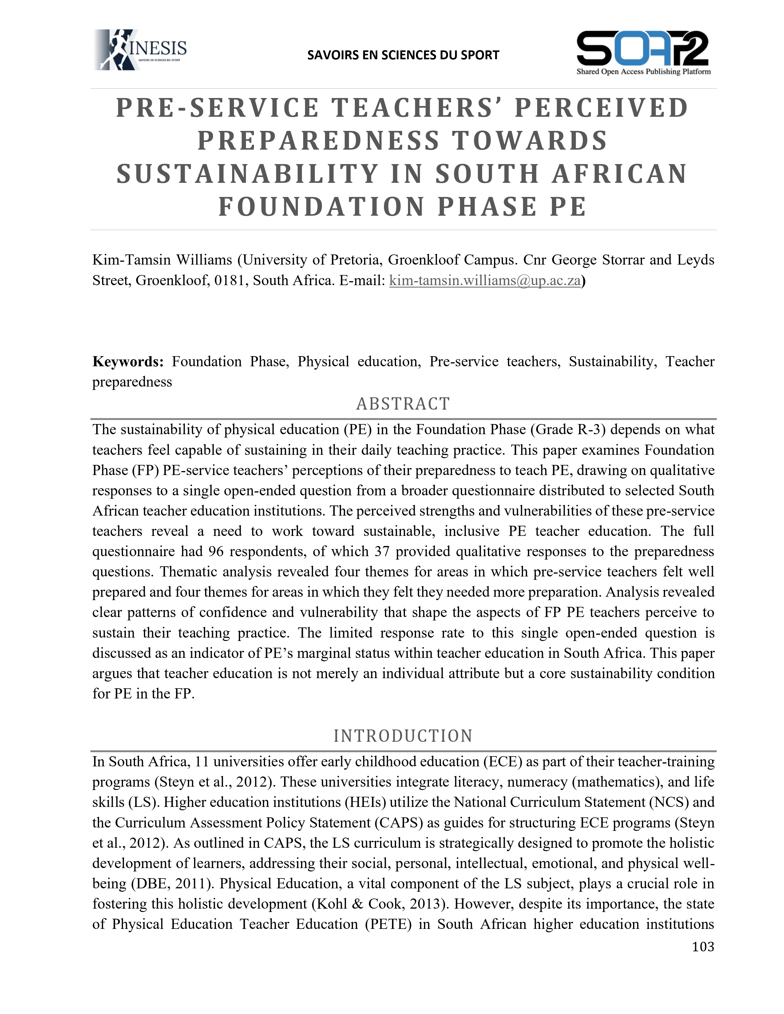 Pre-service teachers’ perceived preparedness towards sustainability in South African Foundation Phase PE