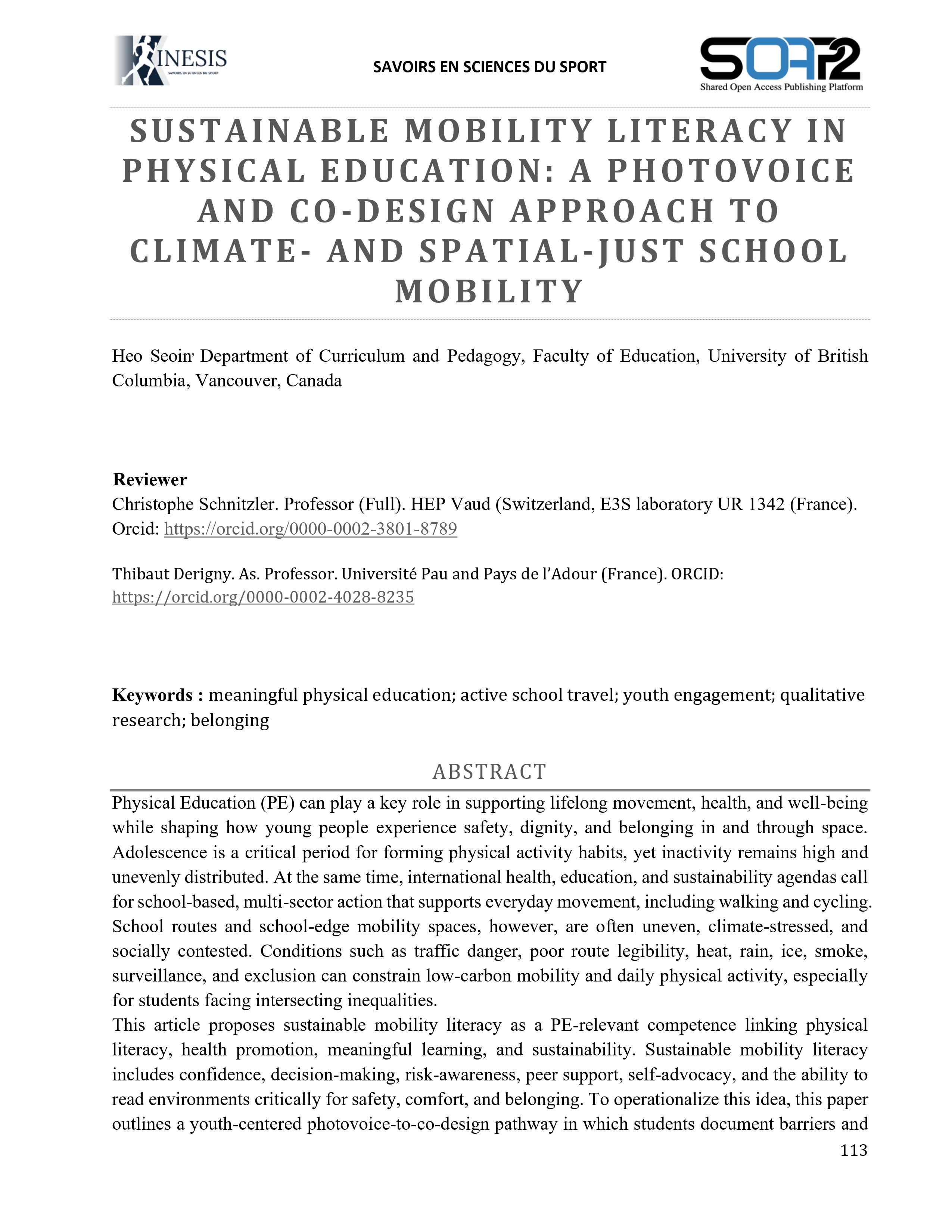 Physical Education (PE) can play a key role in supporting lifelong movement, health, and well-being while shaping how young people experience safety, dignity, and belonging in and through space. Adolescence is a critical period for forming physical activity habits, yet inactivity remains high and unevenly distributed. At the same time, international health, education, and sustainability agendas call for school-based, multi-sector action that supports everyday movement, including walking and cycling. School routes and school-edge mobility spaces, however, are often uneven, climate-stressed, and socially contested. Conditions such as traffic danger, poor route legibility, heat, rain, ice, smoke, surveillance, and exclusion can constrain low-carbon mobility and daily physical activity, especially for students facing intersecting inequalities.