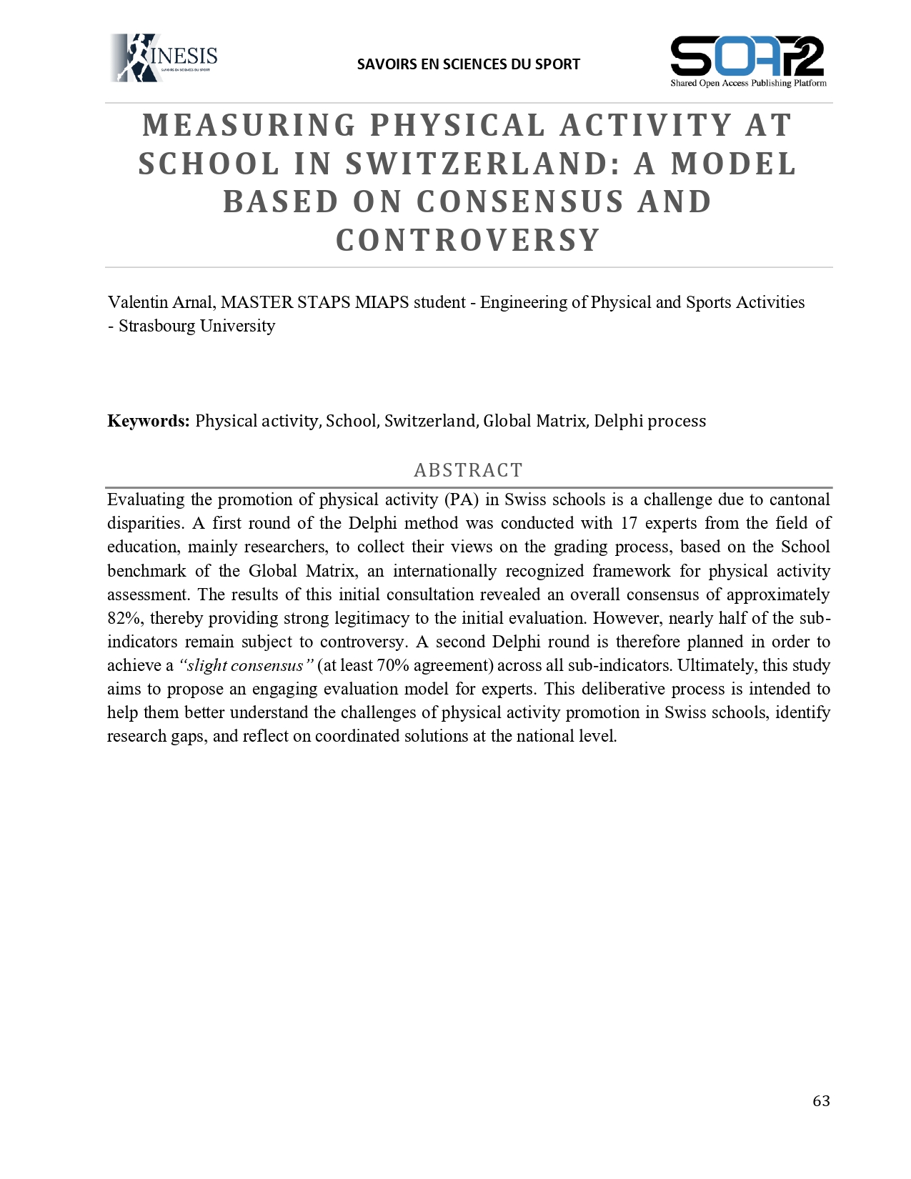 Measuring Physical Activity at School in Switzerland: A Model based on Consensus and Controversy