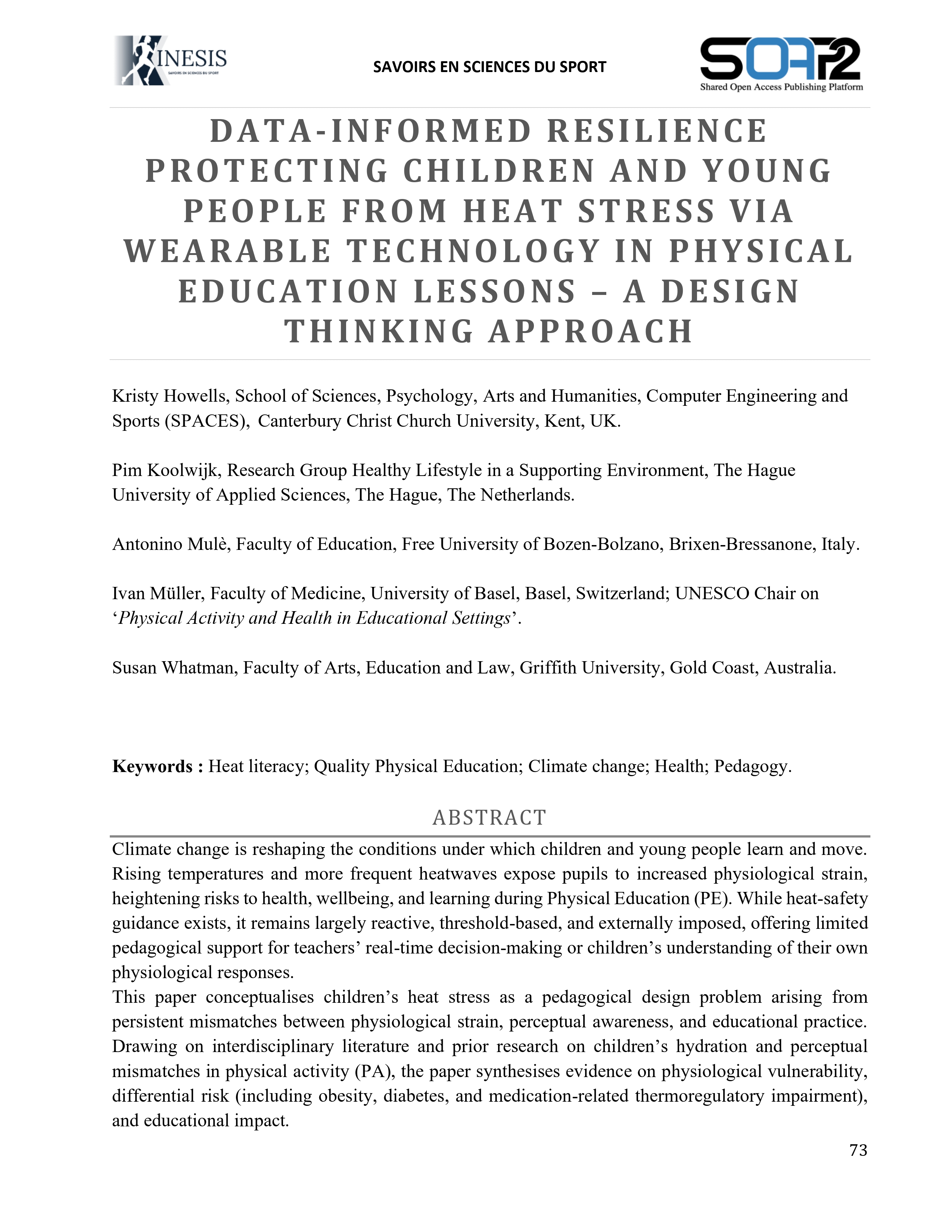 physiological responses. This paper conceptualises children’s heat stress as a pedagogical design problem arising from persistent mismatches between physiological strain, perceptual awareness, and educational practice. Drawing on interdisciplinary literature and prior research on children’s hydration and perceptual mismatches in physical activity (PA), the paper synthesises evidence on physiological vulnerability, differential risk (including obesity, diabetes, and medication-related thermoregulatory impairment), and educational impact.